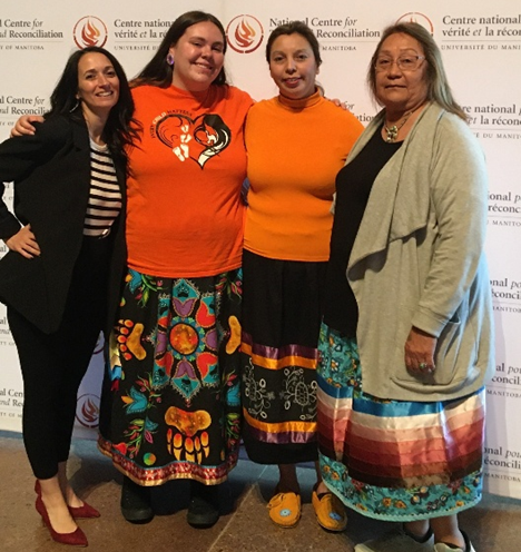 (L-R): Sandra Braga, Indigenous Education Curriculum Consultant; Madison Davey, Loran Scholar; Angel McNaughton; Lori Skye-LaForme, BHNCDSB Indigenous Lead.